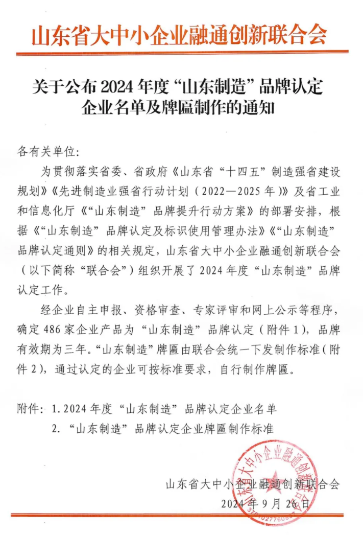 近日,山東省大中小企業(yè)融通創(chuàng)新聯(lián)合會發(fā)布了2024年度“山東制造”品牌擬認(rèn)定企業(yè)名單,經(jīng)過嚴(yán)格的評審和層層篩選,我司的代表產(chǎn)品——防爆鋰電池單軌吊機(jī)車榮獲“山東制造”品牌認(rèn)證!