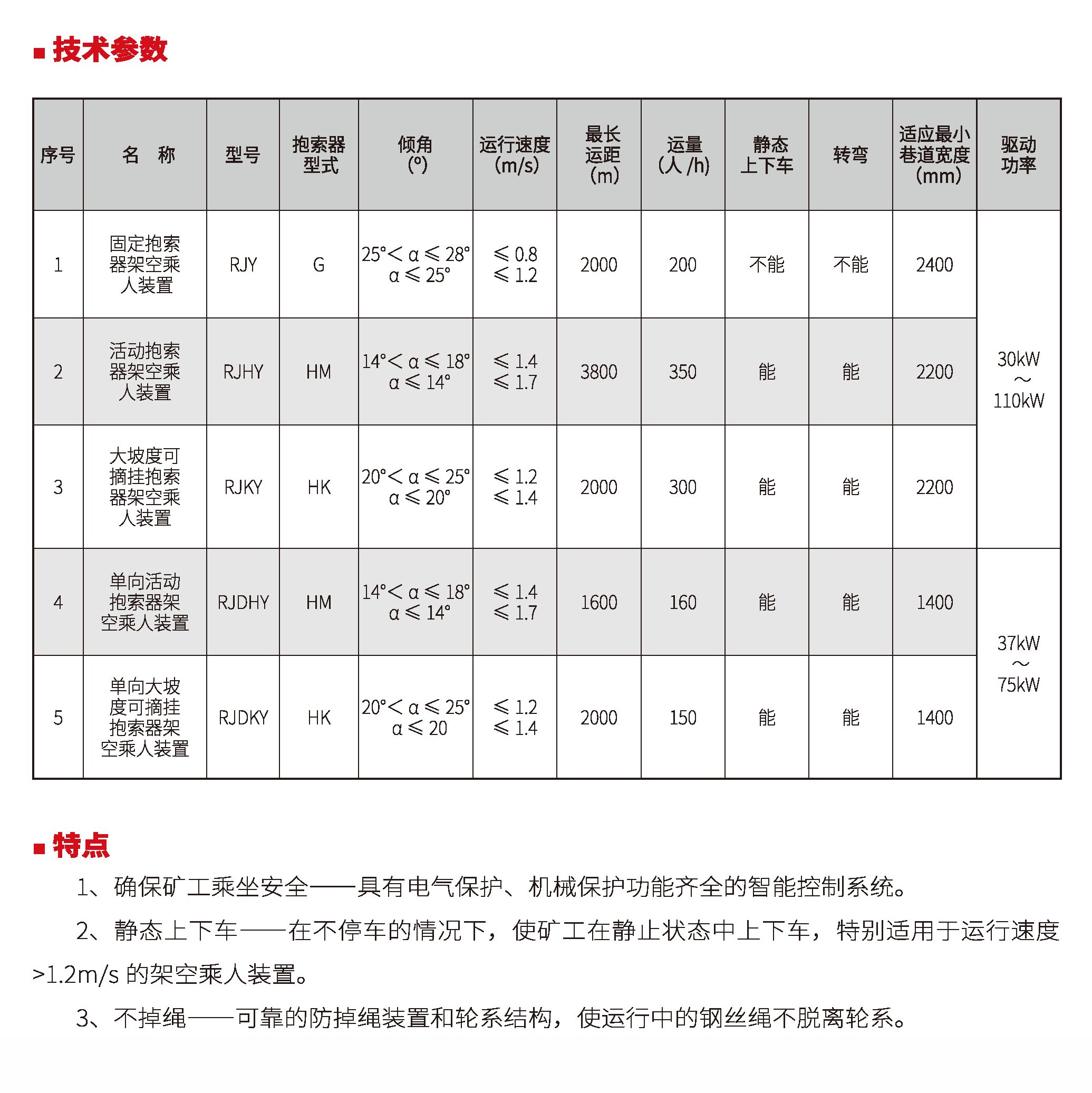 煤礦井下架空乘人裝置安標(biāo)型號(hào)一覽表